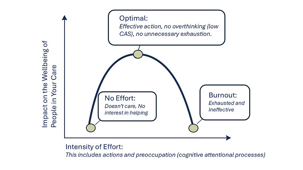 Picture an inverted "U" shape. On the left, as effort increases, your impact increases. You organize meds, you cook, you drive. This is the sweet spot. But there is a peak. Once you cross that peak—into the zone of no sleep and obsessive checking—your effort goes up, but your impact goes down.